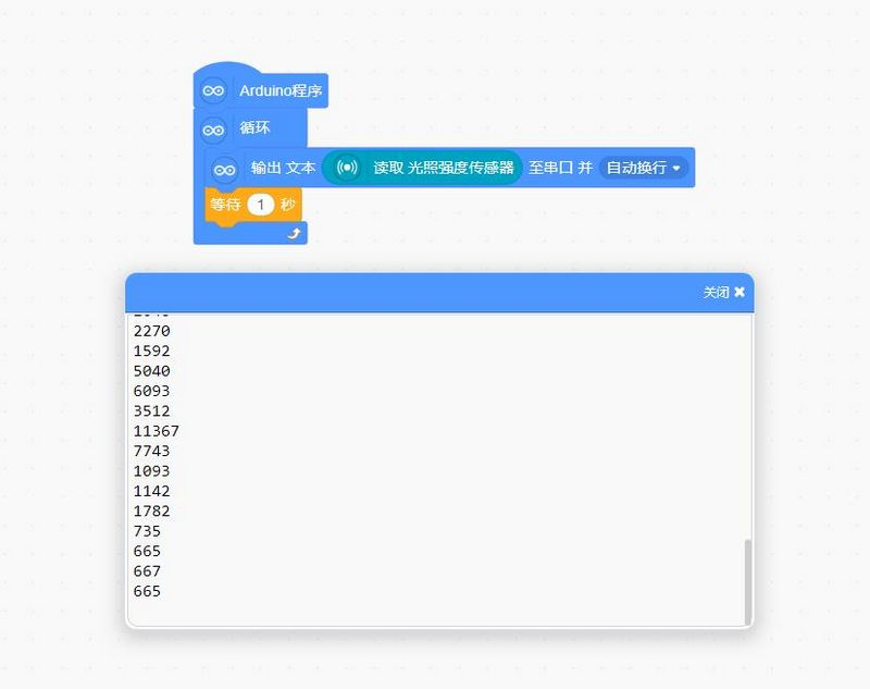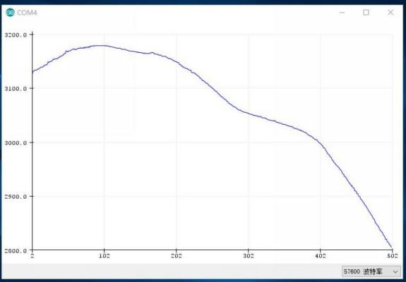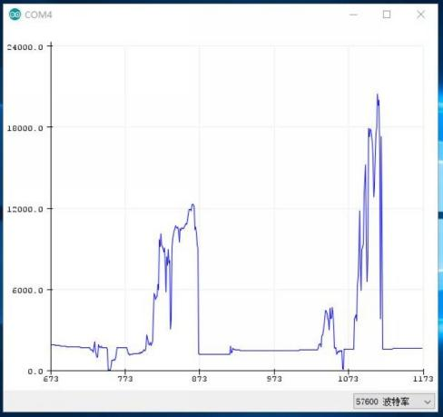The upper graph shows the variation curve of natural light at dusk, while the lower graph displays the waveform when the module is illuminated with a flashlight.