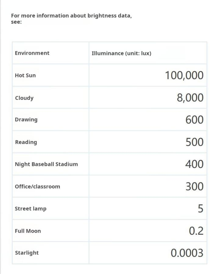 • Illuminance range: 0-65535 lux